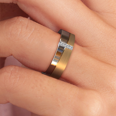 Een unieke bicolor witgouden dames trouwring, door jullie zelf ontworpen en ambachtelijk met de hand gemaakt door onze goudsmid in ons eigen atelier! Een prachtig symbool, dat jullie liefde weerspiegelt en je je leven lang mee mag dragen! Elke trouwring die wij leveren is in ons eigen atelier ambachtelijk met de hand gemaakt. Hierdoor is het mogelijk om al je wensen te verwezenlijken in jouw persoonlijke ring, die bij jouw stijl past. In deze moderne WH0906L16A trouwring is princess zirkonia geplaatst, hij is ±6 mm breed en heeft een mat/glimmende afwerking. Je kunt in de configurator hierboven aangeven welke combinatie van edelmetalen bij jou passen, alles is mogelijk! Het is wel goed om te kijken naar de eigenschappen van de edelmetalen. Goud en zilver zijn bijvoorbeeld twee zachtere edelmetalen. Hoe puurder deze door onze goudsmid worden samengesteld, hoe hoger het aantal karaat, hoe zachter de trouwring is. Maar uiteraard hard genoeg voor het verwerken in een moderne trouwring! Wanneer je een edelmetaal zou willen, die je leven lang mee zal gaan, dan raden wij platina aan. Dit is het sterkste en meest duurzame edelmetaal waar onze goudsmid mee werkt.Heb je nog meer wensen voor je trouwring? Bijvoorbeeld een smallere of breder ring? Of juist een glimmende of matte ring? Er zijn nog talloze variaties mogelijk. Deze kun je altijd bespreken met onze sieradenontwerpers. Ook als je zelf een bepaald design in je hoofd hebt, helpen onze designers je graag verder om jouw trouwringen uit te tekenen totdat deze helemaal naar jouw smaak is samengesteld. Neem gerust contact met ons op!Doordat wij alle trouwringen pas vervaardigen, zodra een bestelling geplaatst wordt, hebben wij geen dure voorraden. Ook worden alle sieraden in eigen atelier naar ambachtelijk vakmanschap gemaakt. Hierdoor kunnen we jou een beste prijsgarantie leveren, de prijs ligt 30% lager dan bij andere juweliers. En dat terwijl jouw trouwringen geleverd worden in de vertrouwde juwelierskwaliteit!Om het voor jou makkelijker te maken kun je ieder besteld sieraad binnen 30 dagen na aflevering eenvoudig weer retour sturen.