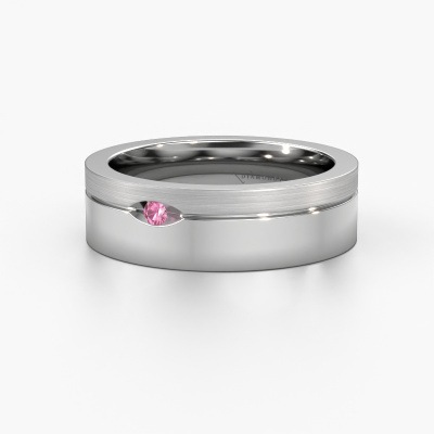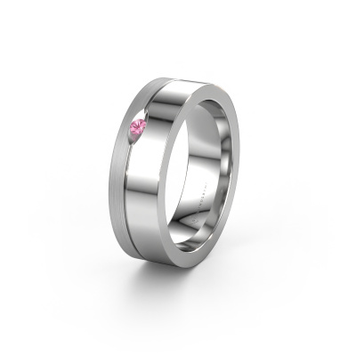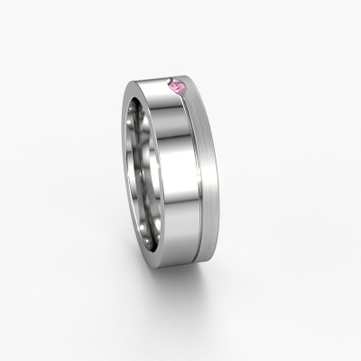 Een echte stijlvolle moderne trouwring! Deze prachtige trouwring voor dames is gezet met ronde roze saffier. Doordat onze goudsmeden de platina trouwring met de hand vervaardigen in ons eigen atelier, worden de roze saffier met uiterste precisie geplaatst, waardoor de lichtinval op de roze saffier optimaal is. De breedte van deze moderne WH0329L16B trouwring is ±6 mm en hij is mat/glimmende afgewerkt. Met behulp van onze configurator kun je de trouwring in verschillende edelmetalen en kleuren samenstellen. Onze sieradenontwerpers zetten je ontwerp vervolgens om in een 3D ontwerp, zodat je precies kunt zien hoe je sieraad eruit komt te zien. Onze goudsmeden vervaardigen daarna je trouwring met de hand, volgens de oude ambachten. Het is namelijk onze uitdaging om precies die trouwring te vervaardigen die jij in gedachten hebt. Een unieke trouwring die helemaal bij jullie stijl past!Deze trouwring kan ook als inspiratiebron dienen. Wil jij de ring mat of glimmend (kosteloos), of zou je hem breder of smaller willen? Alles is mogelijk. Omdat er talloze variaties mogelijk zijn kunnen wij niet alles tonen op onze website. Heb je zelf een idee voor mooie trouwringen of heb je ergens anders een mooie trouwringen set gezien? Neem dan eens contact met ons op, onze designers staan voor je klaar om je hierbij te helpen.Omdat wij zelf alle trouwringen maken en direct aan u leveren kunnen wij u trouwringen leveren tegen een prijs die u nergens anders zult tegenkomen. Een ring wordt pas gemaakt als we een bestelling krijgen, hierdoor hebben wij geen dure voorraden en kunnen wij u de beste prijs garanderen.Om het voor jou makkelijker te maken kun je ieder besteld sieraad binnen 30 dagen na aflevering eenvoudig weer retour sturen.