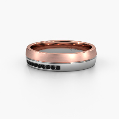 Een unieke bicolor rosé gouden dames trouwring, door jullie zelf ontworpen en ambachtelijk met de hand gemaakt door onze goudsmid in ons eigen atelier! Een prachtig symbool, dat jullie liefde weerspiegelt en je je leven lang mee mag dragen! Elke trouwring die wij leveren is in ons eigen atelier ambachtelijk met de hand gemaakt. Hierdoor is het mogelijk om al je wensen te verwezenlijken in jouw persoonlijke ring, die bij jouw stijl past. In deze modieuze WH0209L25APM trouwring is ronde zwarte diamant geplaatst, hij is ±5 mm breed en heeft een mat/glimmende afwerking. Nadat je je trouwring besteld hebt, gaat onze goudsmid direct met jouw trouwring aan de slag. Wist je dat wij de nieuwste technieken gecombineerd hebben met het oude ambacht? Zo ontwerpen wij eerst jouw sieraad in 3D. Hier kun je, indien gewenst, een dummy van ontvangen, zodat je al kunt kijken of deze helemaal naar jouw wens is. Vervolgens vervaardigt onze perfectionistische goudsmid jouw trouwring in ons atelier, geheel met de hand. Onze passie ligt daarin, dat we iedere keer opnieuw een unieke trouwring kunnen creëren, met de beste afwerking. Zodat jij uiteindelijk die trouwring ontvangt, die helemaal naar jouw wensen vervaardigd is.Heb je nog meer wensen voor je trouwring? Bijvoorbeeld een smallere of breder ring? Of juist een glimmende of matte ring? Er zijn nog talloze variaties mogelijk. Deze kun je altijd bespreken met onze sieradenontwerpers. Ook als je zelf een bepaald design in je hoofd hebt, helpen onze designers je graag verder om jouw trouwringen uit te tekenen totdat deze helemaal naar jouw smaak is samengesteld. Neem gerust contact met ons op!Alle trouwringen worden in ons eigen atelier gemaakt, zodra een bestelling binnenkomt. Hierdoor hoeven wij geen dure voorraden te hebben en kunnen wij je trouwringen leveren tegen een prijs die je bij geen andere juwelier tegen zult komen.Om het voor jou makkelijker te maken kun je ieder besteld sieraad binnen 30 dagen na aflevering eenvoudig weer retour sturen.