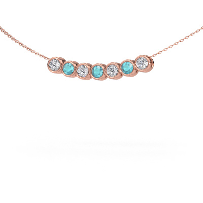 Bij DiamondsByMe creëren we exclusieve en bijzondere juwelen, en gebruiken we alleen de mooiste edelmetalen en edelstenen. Deze exclusieve rosé gouden ketting is een voorbeeld van echt vakmanschap! Alle kleine details zijn door onze goudsmid met veel geduld en passie vervaardigd. Dit ambacht vraagt een deskundig oog en vaardige hand om deze ketting met uiterste precisie samen te stellen. En dat is precies waar onze goudsmeden enthousiast van worden! En dat resulteert in deze modieuze hanger met een bijzondere, exclusieve uitstraling. De prachtige blauw topaas zijn op een bijzondere manier met de hand gezet, zodat deze nog beter tot zijn recht komen. Dit geeft jouw ketting extra allure. Hierboven zie je de rosé gouden Kim 7 ketting met ronde blauw topaas. Wat is er nu mooier, een modieuze ketting ontworpen door jezelf, met de hand gemaakt door ons. Je kunt zelf ieder model aanpassen met de verschillende edelmetalen en edelstenen. Zo creëer je een unieke ketting. Deze ketting kun je op vele manieren zelf samenstellen. Uiteraard kun je altijd contact met ons opnemen, wij helpen je graag bij het samenstellen van jouw Kim 7 modieuze ketting. Vind je het ontwerp mooi, maar je zou toch graag iets aan willen passen, of een edelsteen in het sieraad willen hebben die je hier niet kunt kiezen, neem dan contact met ons op en wij helpen je graag.Elke dag worden nieuwe ketting ontwerpen toegevoegd aan de site door ons team van talentvolle en gepassioneerde ontwerpers. Hierbij wordt ernaar gestreefd om een zo gevarieerd mogelijke collectie aan te bieden. Heb je bepaalde ideeën voor een ketting, neem dan eens contact op voor een offerte. Wij doen je een aanbod wat betreft prijs en kwaliteit waar je geen nee tegen zult kunnen zeggen.Door het gebruik van de modernste technieken, gecombineerd met ambachtelijk vakmanschap kunnen wij alle kettingen zelf in ons atelier maken. Iedere hanger wordt pas gemaakt nadat deze besteld is. Dit heeft als bijkomend voordeel dat we kunnen leveren tegen een prijs die je nergens anders tegenkomt.Om het voor jou makkelijker te maken kun je ieder besteld sieraad binnen 30 dagen na aflevering eenvoudig weer retour sturen.
