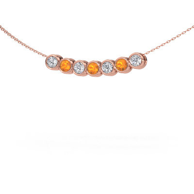 Bij DiamondsByMe creëren we exclusieve en bijzondere juwelen, en gebruiken we alleen de mooiste edelmetalen en edelstenen. Deze exclusieve rosé gouden ketting is een voorbeeld van echt vakmanschap! Alle kleine details zijn door onze goudsmid met veel geduld en passie vervaardigd. Dit ambacht vraagt een deskundig oog en vaardige hand om deze ketting met uiterste precisie samen te stellen. En dat is precies waar onze goudsmeden enthousiast van worden! En dat resulteert in deze modieuze hanger met een bijzondere, exclusieve uitstraling. De prachtige citrien zijn op een bijzondere manier met de hand gezet, zodat deze nog beter tot zijn recht komen. Dit geeft jouw ketting extra allure. Hierboven zie je de rosé gouden Kim 7 ketting met ronde citrien. Wat is er nu mooier, een modieuze ketting ontworpen door jezelf, met de hand gemaakt door ons. Je kunt zelf ieder model aanpassen met de verschillende edelmetalen en edelstenen. Zo creëer je een unieke ketting. Deze ketting kun je op vele manieren zelf samenstellen. Uiteraard kun je altijd contact met ons opnemen, wij helpen je graag bij het samenstellen van jouw Kim 7 modieuze ketting. Vind je het ontwerp mooi, maar je zou toch graag iets aan willen passen, of een edelsteen in het sieraad willen hebben die je hier niet kunt kiezen, neem dan contact met ons op en wij helpen je graag.Elke dag worden nieuwe ketting ontwerpen toegevoegd aan de site door ons team van talentvolle en gepassioneerde ontwerpers. Hierbij wordt ernaar gestreefd om een zo gevarieerd mogelijke collectie aan te bieden. Heb je bepaalde ideeën voor een ketting, neem dan eens contact op voor een offerte. Wij doen je een aanbod wat betreft prijs en kwaliteit waar je geen nee tegen zult kunnen zeggen.Door het gebruik van de modernste technieken, gecombineerd met ambachtelijk vakmanschap kunnen wij alle kettingen zelf in ons atelier maken. Iedere hanger wordt pas gemaakt nadat deze besteld is. Dit heeft als bijkomend voordeel dat we kunnen leveren tegen een prijs die je nergens anders tegenkomt.Om het voor jou makkelijker te maken kun je ieder besteld sieraad binnen 30 dagen na aflevering eenvoudig weer retour sturen.