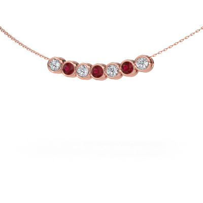 Bij DiamondsByMe creëren we exclusieve en bijzondere juwelen, en gebruiken we alleen de mooiste edelmetalen en edelstenen. Deze exclusieve rosé gouden ketting is een voorbeeld van echt vakmanschap! Alle kleine details zijn door onze goudsmid met veel geduld en passie vervaardigd. Dit ambacht vraagt een deskundig oog en vaardige hand om deze ketting met uiterste precisie samen te stellen. En dat is precies waar onze goudsmeden enthousiast van worden! En dat resulteert in deze modieuze hanger met een bijzondere, exclusieve uitstraling. De prachtige robijn zijn op een bijzondere manier met de hand gezet, zodat deze nog beter tot zijn recht komen. Dit geeft jouw ketting extra allure. Hierboven zie je de rosé gouden Kim 7 ketting met ronde robijn. Wat is er nu mooier, een modieuze ketting ontworpen door jezelf, met de hand gemaakt door ons. Je kunt zelf ieder model aanpassen met de verschillende edelmetalen en edelstenen. Zo creëer je een unieke ketting. Deze ketting kun je op vele manieren zelf samenstellen. Uiteraard kun je altijd contact met ons opnemen, wij helpen je graag bij het samenstellen van jouw Kim 7 modieuze ketting. Vind je het ontwerp mooi, maar je zou toch graag iets aan willen passen, of een edelsteen in het sieraad willen hebben die je hier niet kunt kiezen, neem dan contact met ons op en wij helpen je graag.Elke dag worden nieuwe ketting ontwerpen toegevoegd aan de site door ons team van talentvolle en gepassioneerde ontwerpers. Hierbij wordt ernaar gestreefd om een zo gevarieerd mogelijke collectie aan te bieden. Heb je bepaalde ideeën voor een ketting, neem dan eens contact op voor een offerte. Wij doen je een aanbod wat betreft prijs en kwaliteit waar je geen nee tegen zult kunnen zeggen.Door het gebruik van de modernste technieken, gecombineerd met ambachtelijk vakmanschap kunnen wij alle kettingen zelf in ons atelier maken. Iedere hanger wordt pas gemaakt nadat deze besteld is. Dit heeft als bijkomend voordeel dat we kunnen leveren tegen een prijs die je nergens anders tegenkomt.Om het voor jou makkelijker te maken kun je ieder besteld sieraad binnen 30 dagen na aflevering eenvoudig weer retour sturen.