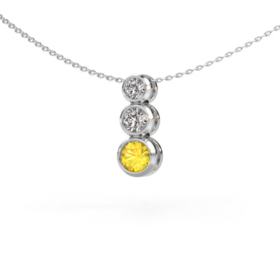 Bij DiamondsByMe creëren we exclusieve en bijzondere juwelen, en gebruiken we alleen de mooiste edelmetalen en edelstenen. Deze exclusieve platina hanger is een voorbeeld van echt vakmanschap! Alle kleine details zijn door onze goudsmid met veel geduld en passie vervaardigd. Dit ambacht vraagt een deskundig oog en vaardige hand om deze hanger met uiterste precisie samen te stellen. En dat is precies waar onze goudsmeden enthousiast van worden! En dat resulteert in deze fantasie hanger met een bijzondere, exclusieve uitstraling. De prachtige gele saffier zijn op een bijzondere manier met de hand gezet, zodat deze nog beter tot zijn recht komen. Dit geeft jouw hanger extra allure. Hierboven zie je de platina Linda hanger met ronde gele saffier. Wat is er nu mooier, een fantasie hanger ontworpen door jezelf, met de hand gemaakt door ons. Je kunt zelf ieder model aanpassen met de verschillende edelmetalen en edelstenen. Zo creëer je een unieke hanger. Deze hanger kun je op vele manieren zelf samenstellen. Uiteraard kun je altijd contact met ons opnemen, wij helpen je graag bij het samenstellen van jouw Linda fantasie hanger. Vind je het ontwerp mooi, maar je zou toch graag iets aan willen passen, of een edelsteen in het sieraad willen hebben die je hier niet kunt kiezen, neem dan contact met ons op en wij helpen je graag.