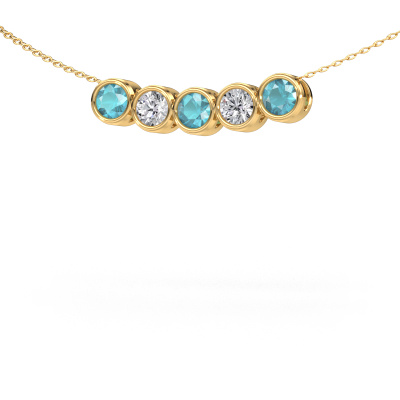 Hoe zou je jouw stijl omschrijven? Hou je van net een beetje anders dan anders? Deze elegante gouden ketting Kim 5 is in ieder geval uniek en speciaal door onze juwelen ontwerpers ontworpen. Onze goudsmid vervaardigt jouw hanger met de hand in ons atelier en perfectioneert deze tot in het kleinste detail. In deze modieuze ketting is een blauw topaas verwerkt. Deze blauw topaas zijn zorgvuldig geselecteerd, want wij vinden dat op jouw elegante ketting alleen de mooiste edelstenen mag schitteren, toch?Wat is er nu mooier, een modieuze ketting ontworpen door jezelf, met de hand gemaakt door ons. Je kunt zelf ieder model aanpassen met de verschillende edelmetalen en edelstenen. Zo creëer je een unieke ketting. Deze ketting kun je op vele manieren zelf samenstellen. Uiteraard kun je altijd contact met ons opnemen, wij helpen je graag bij het samenstellen van jouw Kim 5 modieuze ketting. Vind je het ontwerp mooi, maar je zou toch graag iets aan willen passen, of een edelsteen in het sieraad willen hebben die je hier niet kunt kiezen, neem dan contact met ons op en wij helpen je graag.