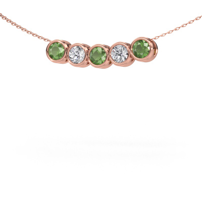 Hoe zou je jouw stijl omschrijven? Hou je van net een beetje anders dan anders? Deze elegante rosé gouden ketting Kim 5 is in ieder geval uniek en speciaal door onze juwelen ontwerpers ontworpen. Onze goudsmid vervaardigt jouw hanger met de hand in ons atelier en perfectioneert deze tot in het kleinste detail. In deze modieuze ketting is een toermalijn groen verwerkt. Deze toermalijn groen zijn zorgvuldig geselecteerd, want wij vinden dat op jouw elegante ketting alleen de mooiste edelstenen mag schitteren, toch?Wat is er nu mooier, een modieuze ketting ontworpen door jezelf, met de hand gemaakt door ons. Je kunt zelf ieder model aanpassen met de verschillende edelmetalen en edelstenen. Zo creëer je een unieke ketting. Deze ketting kun je op vele manieren zelf samenstellen. Uiteraard kun je altijd contact met ons opnemen, wij helpen je graag bij het samenstellen van jouw Kim 5 modieuze ketting. Vind je het ontwerp mooi, maar je zou toch graag iets aan willen passen, of een edelsteen in het sieraad willen hebben die je hier niet kunt kiezen, neem dan contact met ons op en wij helpen je graag.