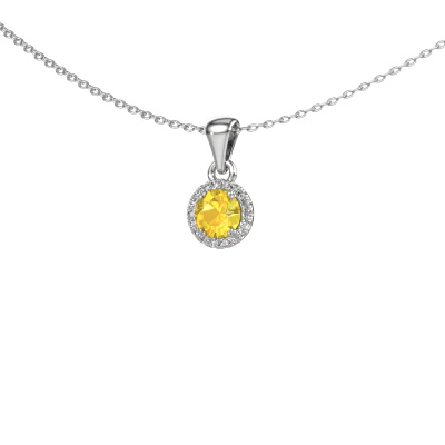 Bij DiamondsByMe creëren we exclusieve en bijzondere juwelen, en gebruiken we alleen de mooiste edelmetalen en edelstenen. Deze exclusieve witgouden hanger is een voorbeeld van echt vakmanschap! Alle kleine details zijn door onze goudsmid met veel geduld en passie vervaardigd. Dit ambacht vraagt een deskundig oog en vaardige hand om deze hanger met uiterste precisie samen te stellen. En dat is precies waar onze goudsmeden enthousiast van worden! En dat resulteert in deze chique hanger met een bijzondere, exclusieve uitstraling. De prachtige gele saffier zijn op een bijzondere manier met de hand gezet, zodat deze nog beter tot zijn recht komen. Dit geeft jouw hanger extra allure. Hierboven zie je de witgouden Seline rnd hanger met ronde gele saffier. Wat is er nu mooier, een chique hanger ontworpen door jezelf, met de hand gemaakt door ons. Je kunt zelf ieder model aanpassen met de verschillende edelmetalen en edelstenen. Zo creëer je een unieke hanger. Deze hanger kun je op vele manieren zelf samenstellen. Uiteraard kun je altijd contact met ons opnemen, wij helpen je graag bij het samenstellen van jouw Seline rnd chique hanger. Vind je het ontwerp mooi, maar je zou toch graag iets aan willen passen, of een edelsteen in het sieraad willen hebben die je hier niet kunt kiezen, neem dan contact met ons op en wij helpen je graag.
