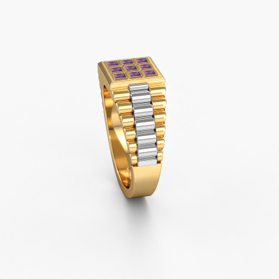 Iedereen kent het design van dit bekende horlogemerk. Met zijn schakels in twee kleuren goud, past deze 2 kleuren 14 Carat gouden Chavez heren ring bij de exclusieve, succesvolle man. Een man die een statement wil maken met een opvallende heren ring met 2 mm amethist. Laat zien wie je bent!Jouw persoonlijke diamanten Chavez heren ring stel je zelf samen, en wordt met liefde en passie door onze goudsmeden vervaardigd. Wil je liever een andere optie dan de hier afgebeelde gouden Chavez heren ring? Dan heb je via de configurator keuze uit diverse mogelijkheden. Kom je er niet helemaal uit, dan dienen wij je graag van advies!Onze talentvolle ontwerpers voegen elke dag nieuwe designs toe aan de website, en werken samen om tot een zo gevarieerd mogelijke collectie te komen met de mooiste sieraden. Wil je een ring laten maken naar eigen ontwerp, neem dan eens contact met ons op voor een offerte. Graag doen wij je een aanbod, waarvan wij denken dat je wat betreft kwaliteit en prijs versteld zult staan.Omdat wij zelf alle sieraden maken en direct aan jou leveren, kunnen wij je een ring leveren tegen een prijs die je nergens anders zult tegenkomen. Een ring wordt pas gemaakt als we een bestelling krijgen, hierdoor hebben wij geen dure voorraden en kunnen wij jou de beste prijs garanderen. Wij begrijpen dat het kopen van een sieraad online spannend is, en denken graag met je mee over de mogelijkheden binnen jouw budget.Om het voor jou makkelijker te maken kun je ieder besteld sieraad binnen 30 dagen na aflevering eenvoudig weer retour sturen.