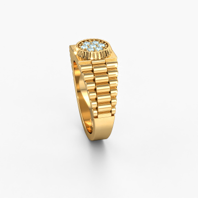 Iedereen kent het design van dit bekende horlogemerk. Met zijn schakels in twee kleuren goud, past deze massieve 14 Carat gouden Nout heren ring bij de exclusieve, succesvolle man. Een man die een statement wil maken met een opvallende heren ring met 2 mm aquamarijn. Laat zien wie je bent!Onze goudsmeden vervaardigen met veel passie en zorgvuldigheid jouw heren ring op maat en naar eigen wens. De gouden heren ring zoals hier is afgebeeld, kan naar jouw wens worden aangepast met de configurator. Heb je bepaalde ideeën die je met de configurator niet kunt toepassen, dan kun je dit altijd even opnemen met onze sieradenontwerpers. Met vragen kun je uiteraard ook altijd terecht.Iedere dag worden nieuwe sieraad ontwerpen toegevoegd aan de website. Ons team van gepassioneerde designers streeft ernaar om tot de mooiste ontwerpen te komen, en een zo gevarieerd mogelijk aanbod. Heb je ergens een ring gezien welke je wilt laten maken, stuur ons dan bericht. Wij sturen je graag een offerte toe. Hierin bieden wij de beste prijs en kwaliteit. Je zult dit zeker niet kunnen afslaan!Door onze modernste technieken kunnen wij met uiterste precisie prachtige sieraden te ontwerpen en voor jou personaliseren in de hoogste juwelierskwaliteit. Tegelijkertijd zijn onze ringen altijd 30% goedkoper dan bij een andere juwelier. Dit komt doordat alle ringen pas vervaardigd worden op het moment dat deze besteld wordt en we daardoor geen dure voorraden hoeven te hanteren. Mocht je aan een bepaald budget gebonden zijn, kunnen we je graag adviseren welke combinatie je het beste kunt kiezen.Om het voor jou makkelijker te maken kun je ieder besteld sieraad binnen 30 dagen na aflevering eenvoudig weer retour sturen.