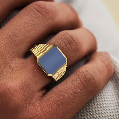Iedereen kent het design van dit bekende horlogemerk. Met zijn schakels in twee kleuren goud, past deze vlakke 14 Carat gouden Brent 2 zegelring bij de exclusieve, succesvolle man. Een man die een statement wil maken met een opvallende zegelring met 12x10 mm blauw lagensteen. Laat zien wie je bent!Jouw persoonlijke speciale Brent 2 zegelring stel je zelf samen, en wordt met liefde en passie door onze goudsmeden vervaardigd. Wil je liever een andere optie dan de hier afgebeelde gouden Brent 2 zegelring? Dan heb je via de configurator keuze uit diverse mogelijkheden. Kom je er niet helemaal uit, dan dienen wij je graag van advies!