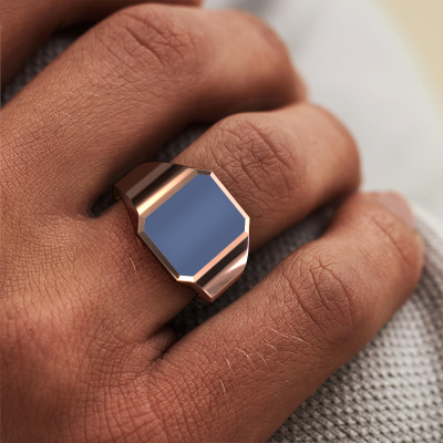 De bovenstaande rechthoekige Lars 2 zegelring met achtkant blauw lagensteen bovenkant staat bol van traditie. De zegelring werd van oudsher van vader op zoon doorgegeven. Met deze rechthoekige rosé gouden zegelring start je je eigen traditie. Ook plaatsen we graag een gravure voor je, zoals een monogram of een familiewapen gravure. Kijk voor meer informatie en de mogelijkheden hiervan bij onze kennisbank. De verschillende afdelingen binnen de kennisbank vind je onderaan deze pagina. Jouw traditie begint hier, met de traditionele rosé gouden Lars 2 zegelring. De betaalbare Lars 2 zegelring zoals je hier afgebeeld ziet, kan helemaal naar jouw wensen verpersoonlijkt worden. De mogelijkheden met onze configurator zijn zeer uitgebreid, maar mocht je toch iets aan jouw persoonlijke Lars 2 zegelring willen aanpassen wat niet als optie geboden wordt, dan kun je altijd contact met ons opnemen.Elke dag worden nieuwe ring ontwerpen toegevoegd aan de site door ons team van talentvolle en gepassioneerde ontwerpers. Hierbij wordt ernaar gestreefd om een zo gevarieerd mogelijke collectie aan te bieden. Heb je bepaalde ideeën voor een ring, neem dan eens contact op voor een offerte. Wij doen je een aanbod wat betreft prijs en kwaliteit waar je geen nee tegen zult kunnen zeggen.Door onze modernste technieken kunnen wij met uiterste precisie prachtige sieraden te ontwerpen en voor jou personaliseren in de hoogste juwelierskwaliteit. Tegelijkertijd zijn onze ringen altijd 30% goedkoper dan bij een andere juwelier. Dit komt doordat alle ringen pas vervaardigd worden op het moment dat deze besteld wordt en we daardoor geen dure voorraden hoeven te hanteren. Mocht je aan een bepaald budget gebonden zijn, kunnen we je graag adviseren welke combinatie je het beste kunt kiezen.Om het voor jou makkelijker te maken kun je ieder besteld sieraad binnen 30 dagen na aflevering eenvoudig weer retour sturen.