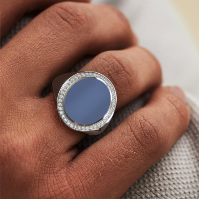 De bovenstaande ovale Adam 5 zegelring met ovale vorm blauw lagensteen bovenkant staat bol van traditie. De zegelring werd van oudsher van vader op zoon doorgegeven. Met deze ovale witgouden zegelring start je je eigen traditie. Ook plaatsen we graag een gravure voor je, zoals een monogram of een familiewapen gravure. Kijk voor meer informatie en de mogelijkheden hiervan bij onze kennisbank. De verschillende afdelingen binnen de kennisbank vind je onderaan deze pagina. Jouw traditie begint hier, met de exclusieve witgouden Adam 5 zegelring. De diamanten Adam 5 zegelring zoals je hier afgebeeld ziet, kan helemaal naar jouw wensen verpersoonlijkt worden. De mogelijkheden met onze configurator zijn zeer uitgebreid, maar mocht je toch iets aan jouw persoonlijke Adam 5 zegelring willen aanpassen wat niet als optie geboden wordt, dan kun je altijd contact met ons opnemen.Onze talentvolle ontwerpers voegen elke dag nieuwe designs toe aan de website, en werken samen om tot een zo gevarieerd mogelijke collectie te komen met de mooiste sieraden. Wil je een ring laten maken naar eigen ontwerp, neem dan eens contact met ons op voor een offerte. Graag doen wij je een aanbod, waarvan wij denken dat je wat betreft kwaliteit en prijs versteld zult staan.Onze goudsmeden vervaardigen pas je ring, zodra je deze besteld hebt. We hebben geen voorraden. Het voordeel hiervan is dat we de voorraad niet door hoeven te berekenen in de prijs, en wij daardoor sieraden kunnen leveren tegen een bijzonder lage prijs.Om het voor jou makkelijker te maken kun je ieder besteld sieraad binnen 30 dagen na aflevering eenvoudig weer retour sturen.