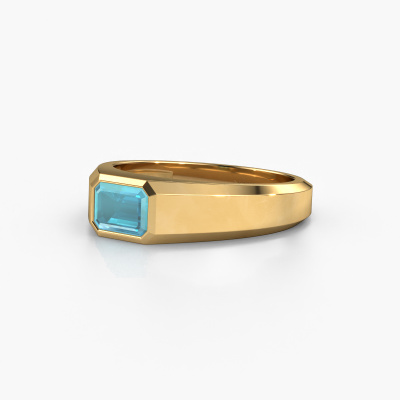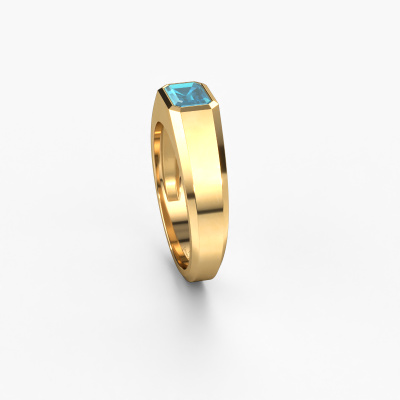 Ben je op zoek naar een exclusieve gouden heren ring, en mag deze van jou best opvallen? Dan is onze gouden Dylan 1 heren ring met smaragd geslepen blauw topaas dé ring voor jou. Hier zie je de ring afgebeeld in goud, maar dit is geheel aan te passen naar jouw wensen. Laat zien waar je voor staat met de gouden blauw topaas Dylan 1 heren ring, de ring voor de man met ambitie. Onze goudsmeden vervaardigen met veel passie en zorgvuldigheid jouw heren ring op maat en naar eigen wens. De gouden heren ring zoals hier is afgebeeld, kan naar jouw wens worden aangepast met de configurator. Heb je bepaalde ideeën die je met de configurator niet kunt toepassen, dan kun je dit altijd even opnemen met onze sieradenontwerpers. Met vragen kun je uiteraard ook altijd terecht.Elke dag worden nieuwe ring ontwerpen toegevoegd aan de site door ons team van talentvolle en gepassioneerde ontwerpers. Hierbij wordt ernaar gestreefd om een zo gevarieerd mogelijke collectie aan te bieden. Heb je bepaalde ideeën voor een ring, neem dan eens contact op voor een offerte. Wij doen je een aanbod wat betreft prijs en kwaliteit waar je geen nee tegen zult kunnen zeggen.Door het gebruik van de modernste technieken, gecombineerd met ambachtelijk vakmanschap kunnen wij alle ringen zelf in ons atelier maken. Iedere ring wordt pas gemaakt nadat deze besteld is. Dit heeft als bijkomend voordeel dat we kunnen leveren tegen een prijs die je nergens anders tegenkomt.Om het voor jou makkelijker te maken kun je ieder besteld sieraad binnen 30 dagen na aflevering eenvoudig weer retour sturen.