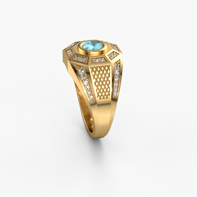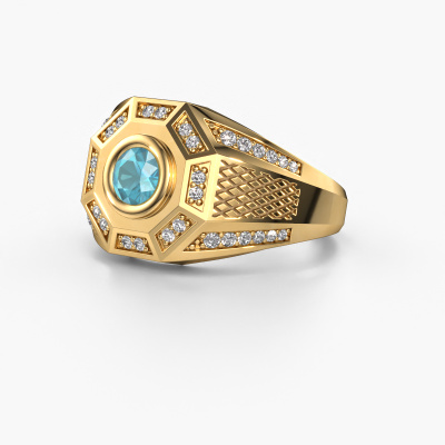 Ben je op zoek naar een moderne gouden heren ring, en mag deze van jou best opvallen? Dan is onze gouden Enzo heren ring met ronde blauw topaas dé ring voor jou. Hier zie je de ring afgebeeld in goud, maar dit is geheel aan te passen naar jouw wensen. Laat zien waar je voor staat met de gouden blauw topaas Enzo heren ring, de ring voor de man met ambitie. Jouw persoonlijke bijzondere Enzo heren ring stel je zelf samen, en wordt met liefde en passie door onze goudsmeden vervaardigd. Wil je liever een andere optie dan de hier afgebeelde gouden Enzo heren ring? Dan heb je via de configurator keuze uit diverse mogelijkheden. Kom je er niet helemaal uit, dan dienen wij je graag van advies!Elke dag worden nieuwe ring ontwerpen toegevoegd aan de site door ons team van talentvolle en gepassioneerde ontwerpers. Hierbij wordt ernaar gestreefd om een zo gevarieerd mogelijke collectie aan te bieden. Heb je bepaalde ideeën voor een ring, neem dan eens contact op voor een offerte. Wij doen je een aanbod wat betreft prijs en kwaliteit waar je geen nee tegen zult kunnen zeggen.Onze goudsmeden vervaardigen pas je ring, zodra je deze besteld hebt. We hebben geen voorraden. Het voordeel hiervan is dat we de voorraad niet door hoeven te berekenen in de prijs, en wij daardoor sieraden kunnen leveren tegen een bijzonder lage prijs.Om het voor jou makkelijker te maken kun je ieder besteld sieraad binnen 30 dagen na aflevering eenvoudig weer retour sturen.
