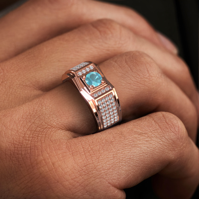 Ben je op zoek naar een moderne rosé gouden heren ring, en mag deze van jou best opvallen? Dan is onze rosé gouden Marcel heren ring met ronde blauw topaas dé ring voor jou. Hier zie je de ring afgebeeld in rosé goud, maar dit is geheel aan te passen naar jouw wensen. Laat zien waar je voor staat met de rosé gouden blauw topaas Marcel heren ring, de ring voor de man met ambitie. Onze goudsmeden vervaardigen met veel passie en zorgvuldigheid jouw heren ring op maat en naar eigen wens. De rosé gouden heren ring zoals hier is afgebeeld, kan naar jouw wens worden aangepast met de configurator. Heb je bepaalde ideeën die je met de configurator niet kunt toepassen, dan kun je dit altijd even opnemen met onze sieradenontwerpers. Met vragen kun je uiteraard ook altijd terecht.