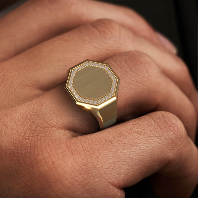Met deze vlakke Floris Octa 3 heren ring presenteer je jezelf, want de juiste ring is een krachtig persoonlijk statement. Hier is de Floris Octa 3 stoer heren ring afgebeeld in 14 Carat goud. Is dit niet geheel jouw kleur, dan kun je dit aanpassen naar het edelmetaal van je keuze. Tenslotte wil je een heren ring in jouw stijl. Een ring die bij jou hoort. En waarmee je zegt: dit ben ik. Onze goudsmeden vervaardigen met veel passie en zorgvuldigheid jouw zegelring op maat en naar eigen wens. De gouden zegelring zoals hier is afgebeeld, kan naar jouw wens worden aangepast met de configurator. Heb je bepaalde ideeën die je met de configurator niet kunt toepassen, dan kun je dit altijd even opnemen met onze sieradenontwerpers. Met vragen kun je uiteraard ook altijd terecht.Onze talentvolle ontwerpers voegen elke dag nieuwe designs toe aan de website, en werken samen om tot een zo gevarieerd mogelijke collectie te komen met de mooiste sieraden. Wil je een ring laten maken naar eigen ontwerp, neem dan eens contact met ons op voor een offerte. Graag doen wij je een aanbod, waarvan wij denken dat je wat betreft kwaliteit en prijs versteld zult staan.Door onze modernste technieken kunnen wij met uiterste precisie prachtige sieraden te ontwerpen en voor jou personaliseren in de hoogste juwelierskwaliteit. Tegelijkertijd zijn onze ringen altijd 30% goedkoper dan bij een andere juwelier. Dit komt doordat alle ringen pas vervaardigd worden op het moment dat deze besteld wordt en we daardoor geen dure voorraden hoeven te hanteren. Mocht je aan een bepaald budget gebonden zijn, kunnen we je graag adviseren welke combinatie je het beste kunt kiezen.Om het voor jou makkelijker te maken kun je ieder besteld sieraad binnen 30 dagen na aflevering eenvoudig weer retour sturen.
