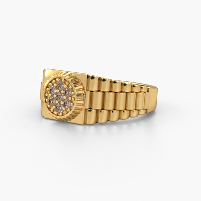 Iedereen kent het design van dit bekende horlogemerk. Met zijn schakels in twee kleuren goud, past deze massieve 14 Carat gouden Nout heren ring bij de exclusieve, succesvolle man. Een man die een statement wil maken met een opvallende heren ring met 0.21 crt bruine diamant. Laat zien wie je bent!Onze goudsmeden vervaardigen met veel passie en zorgvuldigheid jouw heren ring op maat en naar eigen wens. De gouden heren ring zoals hier is afgebeeld, kan naar jouw wens worden aangepast met de configurator. Heb je bepaalde ideeën die je met de configurator niet kunt toepassen, dan kun je dit altijd even opnemen met onze sieradenontwerpers. Met vragen kun je uiteraard ook altijd terecht.Iedere dag worden nieuwe sieraad ontwerpen toegevoegd aan de website. Ons team van gepassioneerde designers streeft ernaar om tot de mooiste ontwerpen te komen, en een zo gevarieerd mogelijk aanbod. Heb je ergens een ring gezien welke je wilt laten maken, stuur ons dan bericht. Wij sturen je graag een offerte toe. Hierin bieden wij de beste prijs en kwaliteit. Je zult dit zeker niet kunnen afslaan!Door onze modernste technieken kunnen wij met uiterste precisie prachtige sieraden te ontwerpen en voor jou personaliseren in de hoogste juwelierskwaliteit. Tegelijkertijd zijn onze ringen altijd 30% goedkoper dan bij een andere juwelier. Dit komt doordat alle ringen pas vervaardigd worden op het moment dat deze besteld wordt en we daardoor geen dure voorraden hoeven te hanteren. Mocht je aan een bepaald budget gebonden zijn, kunnen we je graag adviseren welke combinatie je het beste kunt kiezen.Om het voor jou makkelijker te maken kun je ieder besteld sieraad binnen 30 dagen na aflevering eenvoudig weer retour sturen.