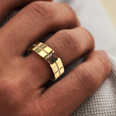Ben je op zoek naar een moderne gouden heren ring, en mag deze van jou best opvallen? Dan is onze gouden Stefan heren ring met princess bruine diamant dé ring voor jou. Hier zie je de ring afgebeeld in goud, maar dit is geheel aan te passen naar jouw wensen. Laat zien waar je voor staat met de gouden bruine diamanten Stefan heren ring, de ring voor de man met ambitie. Onze goudsmeden vervaardigen met veel passie en zorgvuldigheid jouw heren ring op maat en naar eigen wens. De gouden heren ring zoals hier is afgebeeld, kan naar jouw wens worden aangepast met de configurator. Heb je bepaalde ideeën die je met de configurator niet kunt toepassen, dan kun je dit altijd even opnemen met onze sieradenontwerpers. Met vragen kun je uiteraard ook altijd terecht.Elke dag worden nieuwe ring ontwerpen toegevoegd aan de site door ons team van talentvolle en gepassioneerde ontwerpers. Hierbij wordt ernaar gestreefd om een zo gevarieerd mogelijke collectie aan te bieden. Heb je bepaalde ideeën voor een ring, neem dan eens contact op voor een offerte. Wij doen je een aanbod wat betreft prijs en kwaliteit waar je geen nee tegen zult kunnen zeggen.Door het gebruik van de modernste technieken, gecombineerd met ambachtelijk vakmanschap kunnen wij alle ringen zelf in ons atelier maken. Iedere ring wordt pas gemaakt nadat deze besteld is. Dit heeft als bijkomend voordeel dat we kunnen leveren tegen een prijs die je nergens anders tegenkomt.Om het voor jou makkelijker te maken kun je ieder besteld sieraad binnen 30 dagen na aflevering eenvoudig weer retour sturen.