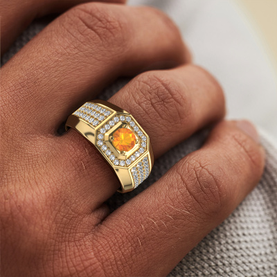 Ben je op zoek naar een moderne gouden heren ring, en mag deze van jou best opvallen? Dan is onze gouden Pavan heren ring met ronde citrien dé ring voor jou. Hier zie je de ring afgebeeld in goud, maar dit is geheel aan te passen naar jouw wensen. Laat zien waar je voor staat met de gouden citrien Pavan heren ring, de ring voor de man met ambitie. De royale Pavan heren ring zoals je hier afgebeeld ziet, kan helemaal naar jouw wensen verpersoonlijkt worden. De mogelijkheden met onze configurator zijn zeer uitgebreid, maar mocht je toch iets aan jouw persoonlijke Pavan heren ring willen aanpassen wat niet als optie geboden wordt, dan kun je altijd contact met ons opnemen.