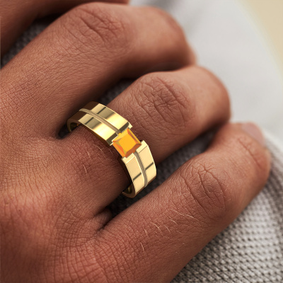 Ben je op zoek naar een moderne gouden heren ring, en mag deze van jou best opvallen? Dan is onze gouden Stefan heren ring met princess citrien dé ring voor jou. Hier zie je de ring afgebeeld in goud, maar dit is geheel aan te passen naar jouw wensen. Laat zien waar je voor staat met de gouden citrien Stefan heren ring, de ring voor de man met ambitie. Onze goudsmeden vervaardigen met veel passie en zorgvuldigheid jouw heren ring op maat en naar eigen wens. De gouden heren ring zoals hier is afgebeeld, kan naar jouw wens worden aangepast met de configurator. Heb je bepaalde ideeën die je met de configurator niet kunt toepassen, dan kun je dit altijd even opnemen met onze sieradenontwerpers. Met vragen kun je uiteraard ook altijd terecht.Elke dag worden nieuwe ring ontwerpen toegevoegd aan de site door ons team van talentvolle en gepassioneerde ontwerpers. Hierbij wordt ernaar gestreefd om een zo gevarieerd mogelijke collectie aan te bieden. Heb je bepaalde ideeën voor een ring, neem dan eens contact op voor een offerte. Wij doen je een aanbod wat betreft prijs en kwaliteit waar je geen nee tegen zult kunnen zeggen.Door het gebruik van de modernste technieken, gecombineerd met ambachtelijk vakmanschap kunnen wij alle ringen zelf in ons atelier maken. Iedere ring wordt pas gemaakt nadat deze besteld is. Dit heeft als bijkomend voordeel dat we kunnen leveren tegen een prijs die je nergens anders tegenkomt.Om het voor jou makkelijker te maken kun je ieder besteld sieraad binnen 30 dagen na aflevering eenvoudig weer retour sturen.