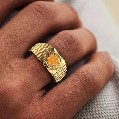 Iedereen kent het design van dit bekende horlogemerk. Met zijn schakels in twee kleuren goud, past deze massieve 14 Carat gouden Nout heren ring bij de exclusieve, succesvolle man. Een man die een statement wil maken met een opvallende heren ring met 2 mm citrien. Laat zien wie je bent!Onze goudsmeden vervaardigen met veel passie en zorgvuldigheid jouw heren ring op maat en naar eigen wens. De gouden heren ring zoals hier is afgebeeld, kan naar jouw wens worden aangepast met de configurator. Heb je bepaalde ideeën die je met de configurator niet kunt toepassen, dan kun je dit altijd even opnemen met onze sieradenontwerpers. Met vragen kun je uiteraard ook altijd terecht.Iedere dag worden nieuwe sieraad ontwerpen toegevoegd aan de website. Ons team van gepassioneerde designers streeft ernaar om tot de mooiste ontwerpen te komen, en een zo gevarieerd mogelijk aanbod. Heb je ergens een ring gezien welke je wilt laten maken, stuur ons dan bericht. Wij sturen je graag een offerte toe. Hierin bieden wij de beste prijs en kwaliteit. Je zult dit zeker niet kunnen afslaan!Door onze modernste technieken kunnen wij met uiterste precisie prachtige sieraden te ontwerpen en voor jou personaliseren in de hoogste juwelierskwaliteit. Tegelijkertijd zijn onze ringen altijd 30% goedkoper dan bij een andere juwelier. Dit komt doordat alle ringen pas vervaardigd worden op het moment dat deze besteld wordt en we daardoor geen dure voorraden hoeven te hanteren. Mocht je aan een bepaald budget gebonden zijn, kunnen we je graag adviseren welke combinatie je het beste kunt kiezen.Om het voor jou makkelijker te maken kun je ieder besteld sieraad binnen 30 dagen na aflevering eenvoudig weer retour sturen.