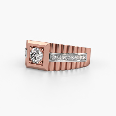Iedereen kent het design van dit bekende horlogemerk. Met zijn schakels in twee kleuren rosé goud, past deze brede 14 Carat rosé gouden Maikel heren ring bij de moderne, succesvolle man. Een man die een statement wil maken met een opvallende heren ring met 0.84 crt diamant. Laat zien wie je bent!Onze goudsmeden vervaardigen met veel passie en zorgvuldigheid jouw heren ring op maat en naar eigen wens. De rosé gouden heren ring zoals hier is afgebeeld, kan naar jouw wens worden aangepast met de configurator. Heb je bepaalde ideeën die je met de configurator niet kunt toepassen, dan kun je dit altijd even opnemen met onze sieradenontwerpers. Met vragen kun je uiteraard ook altijd terecht.