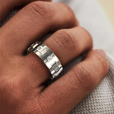 Iedereen kent het design van dit bekende horlogemerk. Met zijn schakels in twee kleuren witgoud, past deze rechte 14 Carat witgouden Ricardo 2 heren ring bij de luxe, succesvolle man. Een man die een statement wil maken met een opvallende heren ring met 0.45 crt diamant. Laat zien wie je bent!Wat is er nu mooier, een luxe heren ring ontworpen door jou zelf, met de hand gemaakt door ons. Je kunt zelf ieder model aanpassen met de verschillende edelmetalen en edelstenen. Zo creëer je een unieke heren ring. Deze heren ring kun je op vele manieren zelf samenstellen. Uiteraard kun je altijd contact met ons opnemen. Wij helpen je graag bij het samenstellen van jouw luxe heren ring. Vind je het ontwerp mooi maar je zou toch graag iets aan willen passen, of een edelsteen in het sieraad willen hebben die niet in deze lijst staat, neem dan contact met ons op en wij vertellen je graag over alle mogelijkheden.Elke dag worden nieuwe ring ontwerpen toegevoegd aan de site door ons team van talentvolle en gepassioneerde ontwerpers. Hierbij wordt ernaar gestreefd om een zo gevarieerd mogelijke collectie aan te bieden. Heb je bepaalde ideeën voor een ring, neem dan eens contact op voor een offerte. Wij doen je een aanbod wat betreft prijs en kwaliteit waar je geen nee tegen zult kunnen zeggen.Onze goudsmeden vervaardigen pas je ring, zodra je deze besteld hebt. We hebben geen voorraden. Het voordeel hiervan is dat we de voorraad niet door hoeven te berekenen in de prijs, en wij daardoor sieraden kunnen leveren tegen een bijzonder lage prijs.Om het voor jou makkelijker te maken kun je ieder besteld sieraad binnen 30 dagen na aflevering eenvoudig weer retour sturen.
