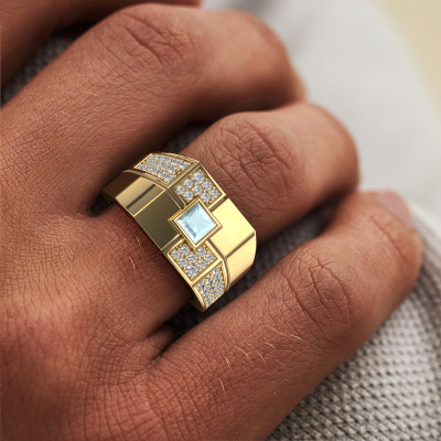 Met deze rechthoekige Rogier heren ring presenteer je jezelf, want de juiste ring is een krachtig persoonlijk statement. Hier is de Rogier stoer heren ring afgebeeld in 14 Carat goud. Is dit niet geheel jouw kleur, dan kun je dit aanpassen naar het edelmetaal van je keuze. Tenslotte wil je een heren ring in jouw stijl. Een ring die bij jou hoort. En waarmee je zegt: dit ben ik. De stoere Rogier heren ring zoals je hier afgebeeld ziet, kan helemaal naar jouw wensen verpersoonlijkt worden. De mogelijkheden met onze configurator zijn zeer uitgebreid, maar mocht je toch iets aan jouw persoonlijke Rogier heren ring willen aanpassen wat niet als optie geboden wordt, dan kun je altijd contact met ons opnemen.Onze talentvolle ontwerpers voegen elke dag nieuwe designs toe aan de website, en werken samen om tot een zo gevarieerd mogelijke collectie te komen met de mooiste sieraden. Wil je een ring laten maken naar eigen ontwerp, neem dan eens contact met ons op voor een offerte. Graag doen wij je een aanbod, waarvan wij denken dat je wat betreft kwaliteit en prijs versteld zult staan.Onze goudsmeden vervaardigen pas je ring, zodra je deze besteld hebt. We hebben geen voorraden. Het voordeel hiervan is dat we de voorraad niet door hoeven te berekenen in de prijs, en wij daardoor sieraden kunnen leveren tegen een bijzonder lage prijs.Om het voor jou makkelijker te maken kun je ieder besteld sieraad binnen 30 dagen na aflevering eenvoudig weer retour sturen.
