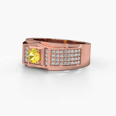 Ben je op zoek naar een moderne rosé gouden heren ring, en mag deze van jou best opvallen? Dan is onze rosé gouden Marcel heren ring met ronde gele saffier dé ring voor jou. Hier zie je de ring afgebeeld in rosé goud, maar dit is geheel aan te passen naar jouw wensen. Laat zien waar je voor staat met de rosé gouden gele saffier Marcel heren ring, de ring voor de man met ambitie. Onze goudsmeden vervaardigen met veel passie en zorgvuldigheid jouw heren ring op maat en naar eigen wens. De rosé gouden heren ring zoals hier is afgebeeld, kan naar jouw wens worden aangepast met de configurator. Heb je bepaalde ideeën die je met de configurator niet kunt toepassen, dan kun je dit altijd even opnemen met onze sieradenontwerpers. Met vragen kun je uiteraard ook altijd terecht.