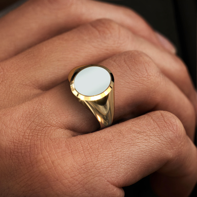 De bovenstaande zware Herman 2 zegelring met ovale vorm groene lagensteen bovenkant staat bol van traditie. De zegelring werd van oudsher van vader op zoon doorgegeven. Met deze zware gouden zegelring start je je eigen traditie. Ook plaatsen we graag een gravure voor je, zoals een monogram of een familiewapen gravure. Kijk voor meer informatie en de mogelijkheden hiervan bij onze kennisbank. De verschillende afdelingen binnen de kennisbank vind je onderaan deze pagina. Jouw traditie begint hier, met de klassieke gouden Herman 2 zegelring. Onze goudsmeden vervaardigen met veel passie en zorgvuldigheid jouw zegelring op maat en naar eigen wens. De gouden zegelring zoals hier is afgebeeld, kan naar jouw wens worden aangepast met de configurator. Heb je bepaalde ideeën die je met de configurator niet kunt toepassen, dan kun je dit altijd even opnemen met onze sieradenontwerpers. Met vragen kun je uiteraard ook altijd terecht.Elke dag worden nieuwe ring ontwerpen toegevoegd aan de site door ons team van talentvolle en gepassioneerde ontwerpers. Hierbij wordt ernaar gestreefd om een zo gevarieerd mogelijke collectie aan te bieden. Heb je bepaalde ideeën voor een ring, neem dan eens contact op voor een offerte. Wij doen je een aanbod wat betreft prijs en kwaliteit waar je geen nee tegen zult kunnen zeggen.Ben je gebonden aan een bepaald budget? Neem gerust contact met ons op, we adviseren graag over alle mogelijkheden. Sowieso leveren wij alle ringen tegen een prijs die je nergens anders tegen komt, doordat we de ring pas vervaardigen wanneer je deze besteld. Hierdoor kunnen wij je een beste prijs garantie geven.Om het voor jou makkelijker te maken kun je ieder besteld sieraad binnen 30 dagen na aflevering eenvoudig weer retour sturen.