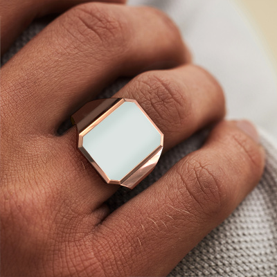 De bovenstaande massieve Lars 4 light zegelring met achtkant groene lagensteen bovenkant staat bol van traditie. De zegelring werd van oudsher van vader op zoon doorgegeven. Met deze massieve rosé gouden zegelring start je je eigen traditie. Ook plaatsen we graag een gravure voor je, zoals een monogram of een familiewapen gravure. Kijk voor meer informatie en de mogelijkheden hiervan bij onze kennisbank. De verschillende afdelingen binnen de kennisbank vind je onderaan deze pagina. Jouw traditie begint hier, met de klassieke rosé gouden Lars 4 light zegelring. Onze goudsmeden vervaardigen met veel passie en zorgvuldigheid jouw zegelring op maat en naar eigen wens. De rosé gouden zegelring zoals hier is afgebeeld, kan naar jouw wens worden aangepast met de configurator. Heb je bepaalde ideeën die je met de configurator niet kunt toepassen, dan kun je dit altijd even opnemen met onze sieradenontwerpers. Met vragen kun je uiteraard ook altijd terecht.Elke dag worden nieuwe ring ontwerpen toegevoegd aan de site door ons team van talentvolle en gepassioneerde ontwerpers. Hierbij wordt ernaar gestreefd om een zo gevarieerd mogelijke collectie aan te bieden. Heb je bepaalde ideeën voor een ring, neem dan eens contact op voor een offerte. Wij doen je een aanbod wat betreft prijs en kwaliteit waar je geen nee tegen zult kunnen zeggen.Ben je gebonden aan een bepaald budget? Neem gerust contact met ons op, we adviseren graag over alle mogelijkheden. Sowieso leveren wij alle ringen tegen een prijs die je nergens anders tegen komt, doordat we de ring pas vervaardigen wanneer je deze besteld. Hierdoor kunnen wij je een beste prijs garantie geven.Om het voor jou makkelijker te maken kun je ieder besteld sieraad binnen 30 dagen na aflevering eenvoudig weer retour sturen.