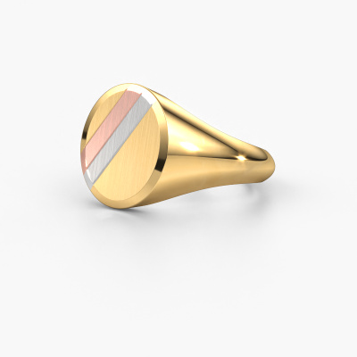 Voor de ringdrager die van strakke vormen houdt, en niet te veel poespas, hebben wij de 2 kleuren gouden Timo 2 zegelring. Deze vlakke ring onderscheidt zich door zijn strakke, stijlvolle design, en is bij uitstek geschikt voor de klassieke man die weet wat hij wil. Wil je graag een gravure zoals een monogram of een familiewapen in je stoer ring? Kijk voor meer informatie en de mogelijkheden hiervan bij onze kennisbank. De verschillende afdelingen binnen de kennisbank vind je onderaan deze pagina. Jouw persoonlijke stoere Timo 2 zegelring stel je zelf samen, en wordt met liefde en passie door onze goudsmeden vervaardigd. Wil je liever een andere optie dan de hier afgebeelde gouden Timo 2 zegelring? Dan heb je via de configurator keuze uit diverse mogelijkheden. Kom je er niet helemaal uit, dan dienen wij je graag van advies!Onze talentvolle ontwerpers voegen elke dag nieuwe designs toe aan de website, en werken samen om tot een zo gevarieerd mogelijke collectie te komen met de mooiste sieraden. Wil je een ring laten maken naar eigen ontwerp, neem dan eens contact met ons op voor een offerte. Graag doen wij je een aanbod, waarvan wij denken dat je wat betreft kwaliteit en prijs versteld zult staan.Omdat wij zelf alle sieraden maken en direct aan jou leveren, kunnen wij je een ring leveren tegen een prijs die je nergens anders zult tegenkomen. Een ring wordt pas gemaakt als we een bestelling krijgen, hierdoor hebben wij geen dure voorraden en kunnen wij jou de beste prijs garanderen. Wij begrijpen dat het kopen van een sieraad online spannend is, en denken graag met je mee over de mogelijkheden binnen jouw budget.Om het voor jou makkelijker te maken kun je ieder besteld sieraad binnen 30 dagen na aflevering eenvoudig weer retour sturen.