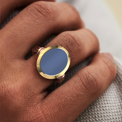 De bovenstaande massieve Jake 3 zegelring met ovale vorm blauw lagensteen bovenkant staat bol van traditie. De zegelring werd van oudsher van vader op zoon doorgegeven. Met deze massieve rosé gouden zegelring start je je eigen traditie. Ook plaatsen we graag een gravure voor je, zoals een monogram of een familiewapen gravure. Kijk voor meer informatie en de mogelijkheden hiervan bij onze kennisbank. De verschillende afdelingen binnen de kennisbank vind je onderaan deze pagina. Jouw traditie begint hier, met de klassieke rosé gouden Jake 3 zegelring. De royale Jake 3 zegelring zoals je hier afgebeeld ziet, kan helemaal naar jouw wensen verpersoonlijkt worden. De mogelijkheden met onze configurator zijn zeer uitgebreid, maar mocht je toch iets aan jouw persoonlijke Jake 3 zegelring willen aanpassen wat niet als optie geboden wordt, dan kun je altijd contact met ons opnemen.Onze talentvolle ontwerpers voegen elke dag nieuwe designs toe aan de website, en werken samen om tot een zo gevarieerd mogelijke collectie te komen met de mooiste sieraden. Wil je een ring laten maken naar eigen ontwerp, neem dan eens contact met ons op voor een offerte. Graag doen wij je een aanbod, waarvan wij denken dat je wat betreft kwaliteit en prijs versteld zult staan.Door het gebruik van de modernste technieken, gecombineerd met ambachtelijk vakmanschap kunnen wij alle ringen zelf in ons atelier maken. Iedere ring wordt pas gemaakt nadat deze besteld is. Dit heeft als bijkomend voordeel dat we kunnen leveren tegen een prijs die je nergens anders tegenkomt.Om het voor jou makkelijker te maken kun je ieder besteld sieraad binnen 30 dagen na aflevering eenvoudig weer retour sturen.