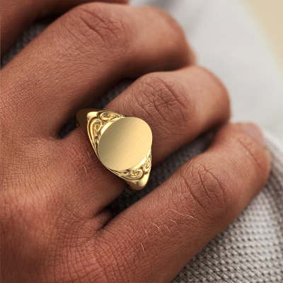 Voor de ringdrager die van strakke vormen houdt, en niet te veel poespas, hebben wij de ovale gouden Jelle 2 pinkring. Deze vlakke ring onderscheidt zich door zijn strakke, stijlvolle design, en is bij uitstek geschikt voor de unieke man die weet wat hij wil. Wil je graag een gravure zoals een monogram of een wapen in je ring? Kijk voor meer informatie en de mogelijkheden hiervan bij onze kennisbank onderaan de pagina. De speciale Jelle 2 zegelring zoals je hier afgebeeld ziet, kan helemaal naar jouw wensen verpersoonlijkt worden. De mogelijkheden met onze configurator zijn zeer uitgebreid, maar mocht je toch iets aan jouw persoonlijke Jelle 2 zegelring willen aanpassen wat niet als optie geboden wordt, dan kun je altijd contact met ons opnemen.Elke dag worden nieuwe ring ontwerpen toegevoegd aan de site door ons team van talentvolle en gepassioneerde ontwerpers. Hierbij wordt ernaar gestreefd om een zo gevarieerd mogelijke collectie aan te bieden. Heb je bepaalde ideeën voor een ring, neem dan eens contact op voor een offerte. Wij doen je een aanbod wat betreft prijs en kwaliteit waar je geen nee tegen zult kunnen zeggen.Met veel passie gaan onze edelsmeden met jouw ring aan de slag in ons atelier, zodra je deze besteld hebt. Doordat we geen sieraden op voorraad hebben, hoeven we de voorraad niet door te berekenen in de prijs. En dat zie je terug in de prijs! We geven je graag een beste prijsgarantie.Om het voor jou makkelijker te maken kun je ieder besteld sieraad binnen 30 dagen na aflevering eenvoudig weer retour sturen.