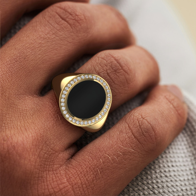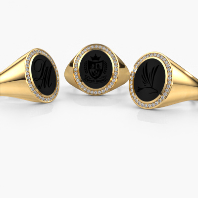De bovenstaande ovale Adam 3 zegel ring met ovale vorm onyx bovenkant staat bol van traditie. De zegel ring werd van oudsher van vader op zoon doorgegeven. Met deze ovale gouden zegel ring start je je eigen traditie. Ook plaatsen we graag een gravure voor je, zoals een monogram of een familiewapen gravure. Kijk voor meer informatie en de mogelijkheden hiervan bij onze kennisbank. De verschillende afdelingen binnen de kennisbank vind je onderaan deze pagina. Jouw traditie begint hier, met de exclusieve gouden Adam 3 zegel ring. Jouw persoonlijke diamanten Adam 3 zegelring stel je zelf samen, en wordt met liefde en passie door onze goudsmeden vervaardigd. Wil je liever een andere optie dan de hier afgebeelde gouden Adam 3 zegelring? Dan heb je via de configurator keuze uit diverse mogelijkheden. Kom je er niet helemaal uit, dan dienen wij je graag van advies!Elke dag worden nieuwe ring ontwerpen toegevoegd aan de site door ons team van talentvolle en gepassioneerde ontwerpers. Hierbij wordt ernaar gestreefd om een zo gevarieerd mogelijke collectie aan te bieden. Heb je bepaalde ideeën voor een ring, neem dan eens contact op voor een offerte. Wij doen je een aanbod wat betreft prijs en kwaliteit waar je geen nee tegen zult kunnen zeggen.Omdat wij zelf alle sieraden maken en direct aan jou leveren, kunnen wij je een ring leveren tegen een prijs die je nergens anders zult tegenkomen. Een ring wordt pas gemaakt als we een bestelling krijgen, hierdoor hebben wij geen dure voorraden en kunnen wij jou de beste prijs garanderen. Wij begrijpen dat het kopen van een sieraad online spannend is, en denken graag met je mee over de mogelijkheden binnen jouw budget.Om het voor jou makkelijker te maken kun je ieder besteld sieraad binnen 30 dagen na aflevering eenvoudig weer retour sturen.