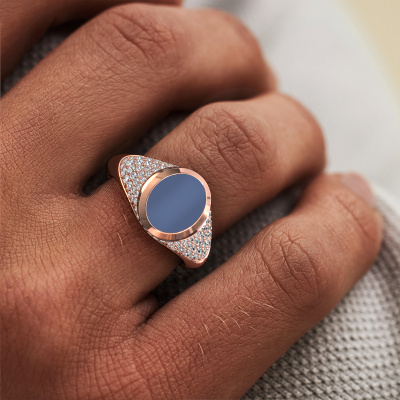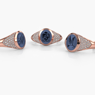 De bovenstaande ovale Giovani pinkring met ovale vorm blauw lagensteen bovenkant staat bol van traditie. De pinkring werd van oudsher van vader op zoon doorgegeven. Met deze ovale rosé gouden pinkring start je je eigen traditie. Ook plaatsen we graag een gravure voor je, zoals een monogram of een familiewapen gravure. Kijk voor meer informatie en de mogelijkheden hiervan bij onze kennisbank. De verschillende afdelingen binnen de kennisbank vind je onderaan deze pagina. Jouw traditie begint hier, met de exclusieve rosé gouden Giovani pinkring. Onze goudsmeden vervaardigen met veel passie en zorgvuldigheid jouw zegelring op maat en naar eigen wens. De rosé gouden zegelring zoals hier is afgebeeld, kan naar jouw wens worden aangepast met de configurator. Heb je bepaalde ideeën die je met de configurator niet kunt toepassen, dan kun je dit altijd even opnemen met onze sieradenontwerpers. Met vragen kun je uiteraard ook altijd terecht.Iedere dag worden nieuwe sieraad ontwerpen toegevoegd aan de website. Ons team van gepassioneerde designers streeft ernaar om tot de mooiste ontwerpen te komen, en een zo gevarieerd mogelijk aanbod. Heb je ergens een ring gezien welke je wilt laten maken, stuur ons dan bericht. Wij sturen je graag een offerte toe. Hierin bieden wij de beste prijs en kwaliteit. Je zult dit zeker niet kunnen afslaan!Ben je gebonden aan een bepaald budget? Neem gerust contact met ons op, we adviseren graag over alle mogelijkheden. Sowieso leveren wij alle ringen tegen een prijs die je nergens anders tegen komt, doordat we de ring pas vervaardigen wanneer je deze besteld. Hierdoor kunnen wij je een beste prijs garantie geven.Om het voor jou makkelijker te maken kun je ieder besteld sieraad binnen 30 dagen na aflevering eenvoudig weer retour sturen.