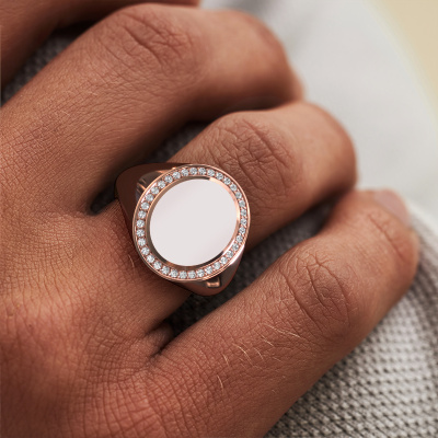 De bovenstaande ovale Adam 3 zegel ring met ovale vorm rode lagensteen bovenkant staat bol van traditie. De zegel ring werd van oudsher van vader op zoon doorgegeven. Met deze ovale rosé gouden zegel ring start je je eigen traditie. Ook plaatsen we graag een gravure voor je, zoals een monogram of een familiewapen gravure. Kijk voor meer informatie en de mogelijkheden hiervan bij onze kennisbank. De verschillende afdelingen binnen de kennisbank vind je onderaan deze pagina. Jouw traditie begint hier, met de exclusieve rosé gouden Adam 3 zegel ring. Jouw persoonlijke diamanten Adam 3 zegelring stel je zelf samen, en wordt met liefde en passie door onze goudsmeden vervaardigd. Wil je liever een andere optie dan de hier afgebeelde rosé gouden Adam 3 zegelring? Dan heb je via de configurator keuze uit diverse mogelijkheden. Kom je er niet helemaal uit, dan dienen wij je graag van advies!Elke dag worden nieuwe ring ontwerpen toegevoegd aan de site door ons team van talentvolle en gepassioneerde ontwerpers. Hierbij wordt ernaar gestreefd om een zo gevarieerd mogelijke collectie aan te bieden. Heb je bepaalde ideeën voor een ring, neem dan eens contact op voor een offerte. Wij doen je een aanbod wat betreft prijs en kwaliteit waar je geen nee tegen zult kunnen zeggen.Omdat wij zelf alle sieraden maken en direct aan jou leveren, kunnen wij je een ring leveren tegen een prijs die je nergens anders zult tegenkomen. Een ring wordt pas gemaakt als we een bestelling krijgen, hierdoor hebben wij geen dure voorraden en kunnen wij jou de beste prijs garanderen. Wij begrijpen dat het kopen van een sieraad online spannend is, en denken graag met je mee over de mogelijkheden binnen jouw budget.Om het voor jou makkelijker te maken kun je ieder besteld sieraad binnen 30 dagen na aflevering eenvoudig weer retour sturen.
