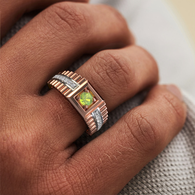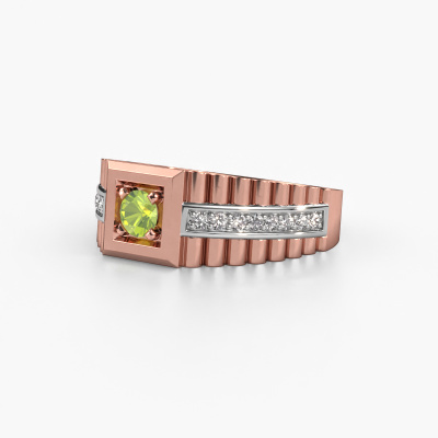 Iedereen kent het design van dit bekende horlogemerk. Met zijn schakels in twee kleuren rosé goud, past deze brede 14 Carat rosé gouden Maikel heren ring bij de moderne, succesvolle man. Een man die een statement wil maken met een opvallende heren ring met 4.2 mm peridoot. Laat zien wie je bent!Onze goudsmeden vervaardigen met veel passie en zorgvuldigheid jouw heren ring op maat en naar eigen wens. De rosé gouden heren ring zoals hier is afgebeeld, kan naar jouw wens worden aangepast met de configurator. Heb je bepaalde ideeën die je met de configurator niet kunt toepassen, dan kun je dit altijd even opnemen met onze sieradenontwerpers. Met vragen kun je uiteraard ook altijd terecht.