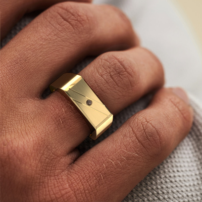 Met deze rechthoekige Dree 3 heren ring presenteer je jezelf, want de juiste ring is een krachtig persoonlijk statement. Hier is de Dree 3 elegant heren ring afgebeeld in 14 Carat goud. Is dit niet geheel jouw kleur, dan kun je dit aanpassen naar het edelmetaal van je keuze. Tenslotte wil je een heren ring in jouw stijl. Een ring die bij jou hoort. En waarmee je zegt: dit ben ik. Jouw persoonlijke elegante Dree 3 heren ring stel je zelf samen, en wordt met liefde en passie door onze goudsmeden vervaardigd. Wil je liever een andere optie dan de hier afgebeelde gouden Dree 3 heren ring? Dan heb je via de configurator keuze uit diverse mogelijkheden. Kom je er niet helemaal uit, dan dienen wij je graag van advies!Elke dag worden nieuwe ring ontwerpen toegevoegd aan de site door ons team van talentvolle en gepassioneerde ontwerpers. Hierbij wordt ernaar gestreefd om een zo gevarieerd mogelijke collectie aan te bieden. Heb je bepaalde ideeën voor een ring, neem dan eens contact op voor een offerte. Wij doen je een aanbod wat betreft prijs en kwaliteit waar je geen nee tegen zult kunnen zeggen.Met veel passie gaan onze edelsmeden met jouw ring aan de slag in ons atelier, zodra je deze besteld hebt. Doordat we geen sieraden op voorraad hebben, hoeven we de voorraad niet door te berekenen in de prijs. En dat zie je terug in de prijs! We geven je graag een beste prijsgarantie.Om het voor jou makkelijker te maken kun je ieder besteld sieraad binnen 30 dagen na aflevering eenvoudig weer retour sturen.