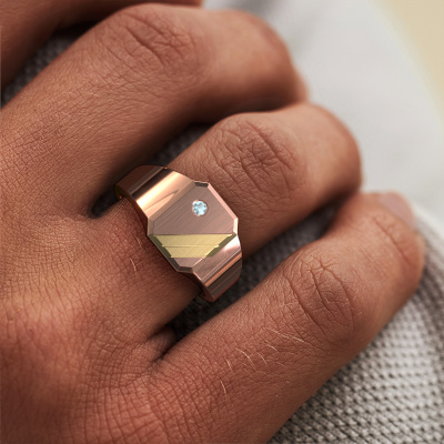 Met deze rechthoekige Patrick 1 zegelring presenteer je jezelf, want de juiste ring is een krachtig persoonlijk statement. Hier is de Patrick 1 beste prijs zegelring afgebeeld in 14 Carat rosé goud. Is dit niet geheel jouw kleur, dan kun je dit aanpassen naar het edelmetaal van je keuze. Tenslotte wil je een zegelring in jouw stijl. Een ring die bij jou hoort. En waarmee je zegt: dit ben ik. Wat is er nu mooier, een moderne zegelring ontworpen door jou zelf, met de hand gemaakt door ons. Je kunt zelf ieder model aanpassen met de verschillende edelmetalen en edelstenen. Zo creëer je een unieke zegelring. Deze zegelring kun je op vele manieren zelf samenstellen. Uiteraard kun je altijd contact met ons opnemen. Wij helpen je graag bij het samenstellen van jouw moderne zegelring. Vind je het ontwerp mooi maar je zou toch graag iets aan willen passen, of een edelsteen in het sieraad willen hebben die niet in deze lijst staat, neem dan contact met ons op en wij vertellen je graag over alle mogelijkheden.Elke dag worden nieuwe ring ontwerpen toegevoegd aan de site door ons team van talentvolle en gepassioneerde ontwerpers. Hierbij wordt ernaar gestreefd om een zo gevarieerd mogelijke collectie aan te bieden. Heb je bepaalde ideeën voor een ring, neem dan eens contact op voor een offerte. Wij doen je een aanbod wat betreft prijs en kwaliteit waar je geen nee tegen zult kunnen zeggen.Door onze modernste technieken kunnen wij met uiterste precisie prachtige sieraden te ontwerpen en voor jou personaliseren in de hoogste juwelierskwaliteit. Tegelijkertijd zijn onze ringen altijd 30% goedkoper dan bij een andere juwelier. Dit komt doordat alle ringen pas vervaardigd worden op het moment dat deze besteld wordt en we daardoor geen dure voorraden hoeven te hanteren. Mocht je aan een bepaald budget gebonden zijn, kunnen we je graag adviseren welke combinatie je het beste kunt kiezen.Om het voor jou makkelijker te maken kun je ieder besteld sieraad binnen 30 dagen na aflevering eenvoudig weer retour sturen.