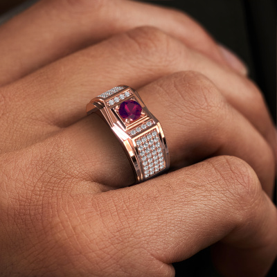 Ben je op zoek naar een moderne rosé gouden heren ring, en mag deze van jou best opvallen? Dan is onze rosé gouden Marcel heren ring met ronde rhodoliet dé ring voor jou. Hier zie je de ring afgebeeld in rosé goud, maar dit is geheel aan te passen naar jouw wensen. Laat zien waar je voor staat met de rosé gouden rhodoliet Marcel heren ring, de ring voor de man met ambitie. Onze goudsmeden vervaardigen met veel passie en zorgvuldigheid jouw heren ring op maat en naar eigen wens. De rosé gouden heren ring zoals hier is afgebeeld, kan naar jouw wens worden aangepast met de configurator. Heb je bepaalde ideeën die je met de configurator niet kunt toepassen, dan kun je dit altijd even opnemen met onze sieradenontwerpers. Met vragen kun je uiteraard ook altijd terecht.