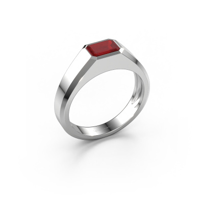 Ben je op zoek naar een exclusieve witgouden heren ring, en mag deze van jou best opvallen? Dan is onze witgouden Dylan 1 heren ring met smaragd geslepen robijn dé ring voor jou. Hier zie je de ring afgebeeld in witgoud, maar dit is geheel aan te passen naar jouw wensen. Laat zien waar je voor staat met de witgouden robijn Dylan 1 heren ring, de ring voor de man met ambitie. Onze goudsmeden vervaardigen met veel passie en zorgvuldigheid jouw heren ring op maat en naar eigen wens. De witgouden heren ring zoals hier is afgebeeld, kan naar jouw wens worden aangepast met de configurator. Heb je bepaalde ideeën die je met de configurator niet kunt toepassen, dan kun je dit altijd even opnemen met onze sieradenontwerpers. Met vragen kun je uiteraard ook altijd terecht.Elke dag worden nieuwe ring ontwerpen toegevoegd aan de site door ons team van talentvolle en gepassioneerde ontwerpers. Hierbij wordt ernaar gestreefd om een zo gevarieerd mogelijke collectie aan te bieden. Heb je bepaalde ideeën voor een ring, neem dan eens contact op voor een offerte. Wij doen je een aanbod wat betreft prijs en kwaliteit waar je geen nee tegen zult kunnen zeggen.Door het gebruik van de modernste technieken, gecombineerd met ambachtelijk vakmanschap kunnen wij alle ringen zelf in ons atelier maken. Iedere ring wordt pas gemaakt nadat deze besteld is. Dit heeft als bijkomend voordeel dat we kunnen leveren tegen een prijs die je nergens anders tegenkomt.Om het voor jou makkelijker te maken kun je ieder besteld sieraad binnen 30 dagen na aflevering eenvoudig weer retour sturen.