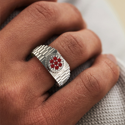 Iedereen kent het design van dit bekende horlogemerk. Met zijn schakels in twee kleuren platina, past deze massieve platina Nout heren ring bij de exclusieve, succesvolle man. Een man die een statement wil maken met een opvallende heren ring met 2 mm robijn. Laat zien wie je bent!Onze goudsmeden vervaardigen met veel passie en zorgvuldigheid jouw heren ring op maat en naar eigen wens. De platina heren ring zoals hier is afgebeeld, kan naar jouw wens worden aangepast met de configurator. Heb je bepaalde ideeën die je met de configurator niet kunt toepassen, dan kun je dit altijd even opnemen met onze sieradenontwerpers. Met vragen kun je uiteraard ook altijd terecht.Iedere dag worden nieuwe sieraad ontwerpen toegevoegd aan de website. Ons team van gepassioneerde designers streeft ernaar om tot de mooiste ontwerpen te komen, en een zo gevarieerd mogelijk aanbod. Heb je ergens een ring gezien welke je wilt laten maken, stuur ons dan bericht. Wij sturen je graag een offerte toe. Hierin bieden wij de beste prijs en kwaliteit. Je zult dit zeker niet kunnen afslaan!Door onze modernste technieken kunnen wij met uiterste precisie prachtige sieraden te ontwerpen en voor jou personaliseren in de hoogste juwelierskwaliteit. Tegelijkertijd zijn onze ringen altijd 30% goedkoper dan bij een andere juwelier. Dit komt doordat alle ringen pas vervaardigd worden op het moment dat deze besteld wordt en we daardoor geen dure voorraden hoeven te hanteren. Mocht je aan een bepaald budget gebonden zijn, kunnen we je graag adviseren welke combinatie je het beste kunt kiezen.Om het voor jou makkelijker te maken kun je ieder besteld sieraad binnen 30 dagen na aflevering eenvoudig weer retour sturen.