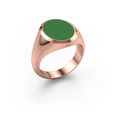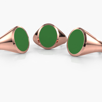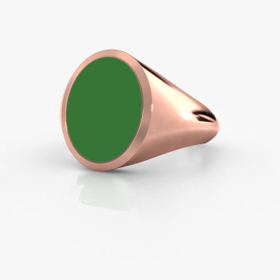 De bovenstaande massieve Herman 4 zegelring met ovale vorm groene emaille bovenkant staat bol van traditie. De zegelring werd van oudsher van vader op zoon doorgegeven. Met deze massieve rosé gouden zegelring start je je eigen traditie. Ook plaatsen we graag een gravure voor je, zoals een monogram of een familiewapen gravure. Kijk voor meer informatie en de mogelijkheden hiervan bij onze kennisbank. De verschillende afdelingen binnen de kennisbank vind je onderaan deze pagina. Jouw traditie begint hier, met de klassieke rosé gouden Herman 4 zegelring. Zodra je jouw Herman 4 zegelring hebt ontworpen met onze configurator, gaan onze goudsmeden aan de slag om deze voor je te vervaardigen. Dit gebeurt op ambachtelijke wijze met passie en zorgvuldigheid. Bovendien werken wij met eerlijk gewonnen materialen. Wil je iets aanpassen, dan doe je dat met onze configurator. Heb je specifieke wensen voor jouw Herman 4 zegelring, maar zie je deze niet als optie staan in de configurator, neem dan contact op met ons team van ervaren ontwerpers.Elke dag worden nieuwe ring ontwerpen toegevoegd aan de site door ons team van talentvolle en gepassioneerde ontwerpers. Hierbij wordt ernaar gestreefd om een zo gevarieerd mogelijke collectie aan te bieden. Heb je bepaalde ideeën voor een ring, neem dan eens contact op voor een offerte. Wij doen je een aanbod wat betreft prijs en kwaliteit waar je geen nee tegen zult kunnen zeggen.Ben je gebonden aan een bepaald budget? Neem gerust contact met ons op, we adviseren graag over alle mogelijkheden. Sowieso leveren wij alle ringen tegen een prijs die je nergens anders tegen komt, doordat we de ring pas vervaardigen wanneer je deze besteld. Hierdoor kunnen wij je een beste prijs garantie geven.Om het voor jou makkelijker te maken kun je ieder besteld sieraad binnen 30 dagen na aflevering eenvoudig weer retour sturen.
