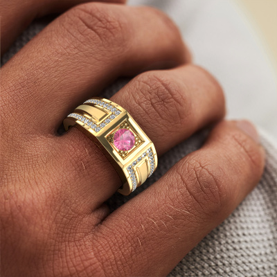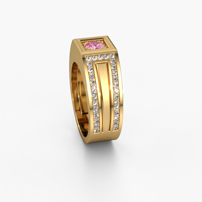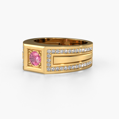 Ben je op zoek naar een unieke gouden heren ring, en mag deze van jou best opvallen? Dan is onze gouden Lando heren ring met ronde roze saffier dé ring voor jou. Hier zie je de ring afgebeeld in goud, maar dit is geheel aan te passen naar jouw wensen. Laat zien waar je voor staat met de gouden roze saffier Lando heren ring, de ring voor de man met ambitie. Wat denk je van deze unieke gouden heren ring? Deze Lando heren ring stel je helemaal zelf samen met onze configurator. Vervolgens wordt jouw persoonlijke royale Lando heren ring met de hand gemaakt door onze goudsmeden. De keuze van het edelmetaal en de edelstenen kun je helemaal naar eigen wens invullen. Heb je bepaalde ideeën voor jouw heren ring, maar kun je deze niet bij onze opties vinden? Laat het ons dan gerust weten. Wij maken jouw persoonlijke unieke heren ring geheel naar jouw wensen.Iedere dag worden nieuwe sieraad ontwerpen toegevoegd aan de website. Ons team van gepassioneerde designers streeft ernaar om tot de mooiste ontwerpen te komen, en een zo gevarieerd mogelijk aanbod. Heb je ergens een ring gezien welke je wilt laten maken, stuur ons dan bericht. Wij sturen je graag een offerte toe. Hierin bieden wij de beste prijs en kwaliteit. Je zult dit zeker niet kunnen afslaan!Omdat wij zelf alle sieraden maken en direct aan jou leveren, kunnen wij je een ring leveren tegen een prijs die je nergens anders zult tegenkomen. Een ring wordt pas gemaakt als we een bestelling krijgen, hierdoor hebben wij geen dure voorraden en kunnen wij jou de beste prijs garanderen. Wij begrijpen dat het kopen van een sieraad online spannend is, en denken graag met je mee over de mogelijkheden binnen jouw budget.Om het voor jou makkelijker te maken kun je ieder besteld sieraad binnen 30 dagen na aflevering eenvoudig weer retour sturen.
