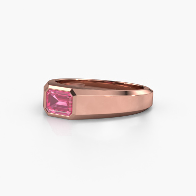 Ben je op zoek naar een exclusieve rosé gouden heren ring, en mag deze van jou best opvallen? Dan is onze rosé gouden Dylan 1 heren ring met smaragd geslepen roze saffier dé ring voor jou. Hier zie je de ring afgebeeld in rosé goud, maar dit is geheel aan te passen naar jouw wensen. Laat zien waar je voor staat met de rosé gouden roze saffier Dylan 1 heren ring, de ring voor de man met ambitie. Onze goudsmeden vervaardigen met veel passie en zorgvuldigheid jouw heren ring op maat en naar eigen wens. De rosé gouden heren ring zoals hier is afgebeeld, kan naar jouw wens worden aangepast met de configurator. Heb je bepaalde ideeën die je met de configurator niet kunt toepassen, dan kun je dit altijd even opnemen met onze sieradenontwerpers. Met vragen kun je uiteraard ook altijd terecht.Elke dag worden nieuwe ring ontwerpen toegevoegd aan de site door ons team van talentvolle en gepassioneerde ontwerpers. Hierbij wordt ernaar gestreefd om een zo gevarieerd mogelijke collectie aan te bieden. Heb je bepaalde ideeën voor een ring, neem dan eens contact op voor een offerte. Wij doen je een aanbod wat betreft prijs en kwaliteit waar je geen nee tegen zult kunnen zeggen.Door het gebruik van de modernste technieken, gecombineerd met ambachtelijk vakmanschap kunnen wij alle ringen zelf in ons atelier maken. Iedere ring wordt pas gemaakt nadat deze besteld is. Dit heeft als bijkomend voordeel dat we kunnen leveren tegen een prijs die je nergens anders tegenkomt.Om het voor jou makkelijker te maken kun je ieder besteld sieraad binnen 30 dagen na aflevering eenvoudig weer retour sturen.