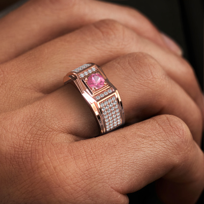 Ben je op zoek naar een moderne rosé gouden heren ring, en mag deze van jou best opvallen? Dan is onze rosé gouden Marcel heren ring met ronde roze saffier dé ring voor jou. Hier zie je de ring afgebeeld in rosé goud, maar dit is geheel aan te passen naar jouw wensen. Laat zien waar je voor staat met de rosé gouden roze saffier Marcel heren ring, de ring voor de man met ambitie. Onze goudsmeden vervaardigen met veel passie en zorgvuldigheid jouw heren ring op maat en naar eigen wens. De rosé gouden heren ring zoals hier is afgebeeld, kan naar jouw wens worden aangepast met de configurator. Heb je bepaalde ideeën die je met de configurator niet kunt toepassen, dan kun je dit altijd even opnemen met onze sieradenontwerpers. Met vragen kun je uiteraard ook altijd terecht.