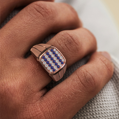 Ben je op zoek naar een exclusieve rosé gouden pinkring, en mag deze van jou best opvallen? Dan is onze rosé gouden Robbert pinkring met ronde saffier dé ring voor jou. Hier zie je de ring afgebeeld in rosé goud, maar dit is geheel aan te passen naar jouw wensen. Laat zien waar je voor staat met de rosé gouden saffier Robbert pinkring, de ring voor de man met ambitie. Wat denk je van deze exclusieve rosé gouden heren ring? Deze Robbert heren ring stel je helemaal zelf samen met onze configurator. Vervolgens wordt jouw persoonlijke elegante Robbert heren ring met de hand gemaakt door onze goudsmeden. De keuze van het edelmetaal en de edelstenen kun je helemaal naar eigen wens invullen. Heb je bepaalde ideeën voor jouw heren ring, maar kun je deze niet bij onze opties vinden? Laat het ons dan gerust weten. Wij maken jouw persoonlijke exclusieve heren ring geheel naar jouw wensen.