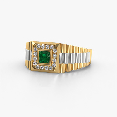 Iedereen kent het design van dit bekende horlogemerk. Met zijn schakels in twee kleuren goud, past deze massieve 14 Carat gouden Zilan heren ring bij de exclusieve, succesvolle man. Een man die een statement wil maken met een opvallende heren ring met 4 mm smaragd. Laat zien wie je bent!Jouw persoonlijke bijzondere Zilan heren ring stel je zelf samen, en wordt met liefde en passie door onze goudsmeden vervaardigd. Wil je liever een andere optie dan de hier afgebeelde gouden Zilan heren ring? Dan heb je via de configurator keuze uit diverse mogelijkheden. Kom je er niet helemaal uit, dan dienen wij je graag van advies!Elke dag worden nieuwe ring ontwerpen toegevoegd aan de site door ons team van talentvolle en gepassioneerde ontwerpers. Hierbij wordt ernaar gestreefd om een zo gevarieerd mogelijke collectie aan te bieden. Heb je bepaalde ideeën voor een ring, neem dan eens contact op voor een offerte. Wij doen je een aanbod wat betreft prijs en kwaliteit waar je geen nee tegen zult kunnen zeggen.Onze goudsmeden vervaardigen pas je ring, zodra je deze besteld hebt. We hebben geen voorraden. Het voordeel hiervan is dat we de voorraad niet door hoeven te berekenen in de prijs, en wij daardoor sieraden kunnen leveren tegen een bijzonder lage prijs.Om het voor jou makkelijker te maken kun je ieder besteld sieraad binnen 30 dagen na aflevering eenvoudig weer retour sturen.