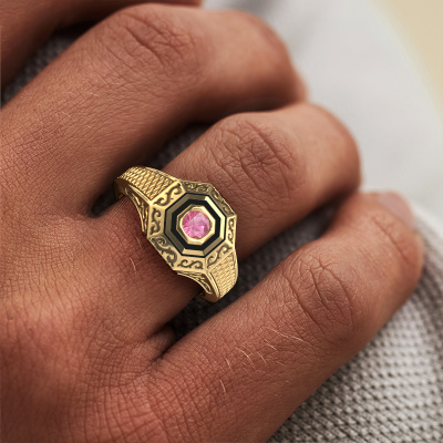 Met deze massieve Dion heren ring presenteer je jezelf, want de juiste ring is een krachtig persoonlijk statement. Hier is de Dion speciaal heren ring afgebeeld in 14 Carat goud. Is dit niet geheel jouw kleur, dan kun je dit aanpassen naar het edelmetaal van je keuze. Tenslotte wil je een heren ring in jouw stijl. Een ring die bij jou hoort. En waarmee je zegt: dit ben ik. Wat denk je van deze vintage gouden heren ring? Deze Dion heren ring stel je helemaal zelf samen met onze configurator. Vervolgens wordt jouw persoonlijke speciale Dion heren ring met de hand gemaakt door onze goudsmeden. De keuze van het edelmetaal en de edelstenen kun je helemaal naar eigen wens invullen. Heb je bepaalde ideeën voor jouw heren ring, maar kun je deze niet bij onze opties vinden? Laat het ons dan gerust weten. Wij maken jouw persoonlijke vintage heren ring geheel naar jouw wensen.Elke dag worden nieuwe ring ontwerpen toegevoegd aan de site door ons team van talentvolle en gepassioneerde ontwerpers. Hierbij wordt ernaar gestreefd om een zo gevarieerd mogelijke collectie aan te bieden. Heb je bepaalde ideeën voor een ring, neem dan eens contact op voor een offerte. Wij doen je een aanbod wat betreft prijs en kwaliteit waar je geen nee tegen zult kunnen zeggen.Door onze modernste technieken kunnen wij met uiterste precisie prachtige sieraden te ontwerpen en voor jou personaliseren in de hoogste juwelierskwaliteit. Tegelijkertijd zijn onze ringen altijd 30% goedkoper dan bij een andere juwelier. Dit komt doordat alle ringen pas vervaardigd worden op het moment dat deze besteld wordt en we daardoor geen dure voorraden hoeven te hanteren. Mocht je aan een bepaald budget gebonden zijn, kunnen we je graag adviseren welke combinatie je het beste kunt kiezen.Om het voor jou makkelijker te maken kun je ieder besteld sieraad binnen 30 dagen na aflevering eenvoudig weer retour sturen.