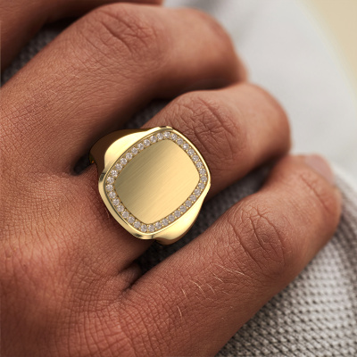 Met deze vlakke Floris Cushion 4 heren ring presenteer je jezelf, want de juiste ring is een krachtig persoonlijk statement. Hier is de Floris Cushion 4 elegant heren ring afgebeeld in 14 Carat goud. Is dit niet geheel jouw kleur, dan kun je dit aanpassen naar het edelmetaal van je keuze. Tenslotte wil je een heren ring in jouw stijl. Een ring die bij jou hoort. En waarmee je zegt: dit ben ik. Wat denk je van deze moderne gouden zegelring? Deze Floris Cushion 4 zegelring stel je helemaal zelf samen met onze configurator. Vervolgens wordt jouw persoonlijke elegante Floris Cushion 4 zegelring met de hand gemaakt door onze goudsmeden. De keuze van het edelmetaal en de edelstenen kun je helemaal naar eigen wens invullen. Heb je bepaalde ideeën voor jouw zegelring, maar kun je deze niet bij onze opties vinden? Laat het ons dan gerust weten. Wij maken jouw persoonlijke moderne zegelring geheel naar jouw wensen.